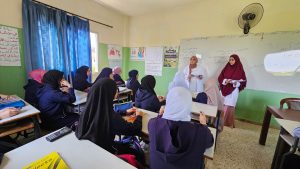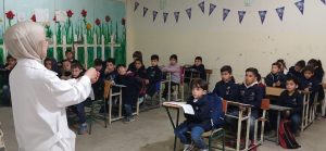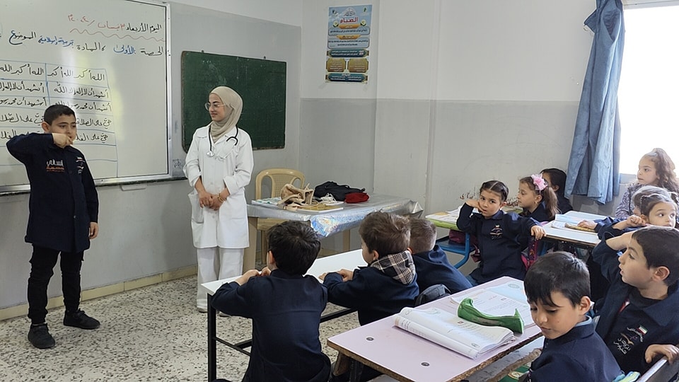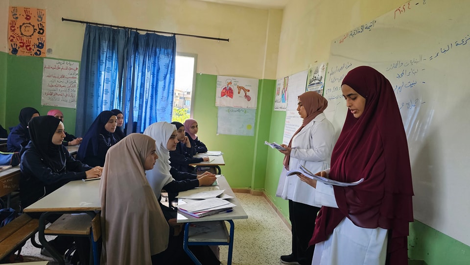 ● طلاب العناية التمريضية في معهد التميز المهني لتطوير مهاراتهم في مجال التوعية الصحية والتقديم.