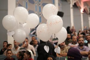 تخلل الاحتفال عدة فقرات من وحي المناسبة وكان لإخوتنا الصابرين في غزة نصيباً من تلك الفقرات .كلمة المناسبة ألقاها مدير مكتب التعليم الأستاذ مصطفى علوش وجّه فيها أسمى آيات التحية والمحبة والتقدير لطلاب سوريا الذين احتفلوا بالأمس بتخريج 1500 حافظ وحافظة للقرآن الكريم في إدلب بمشهد مهيب ورائع .