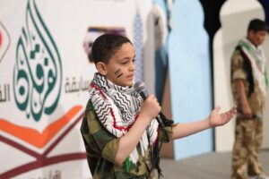 ووجه التحية أيضاً لأطفال غزة وأطفال فلسطين الذين حفظوا القرآن الكريم وكان الدافع لهم في الصبر والثبات ومواجهة هذا العدوان الغاشم والإبادة الجماعية التي يتعرضون لها بصدورهم العارية وإيمانهم الراسخ .